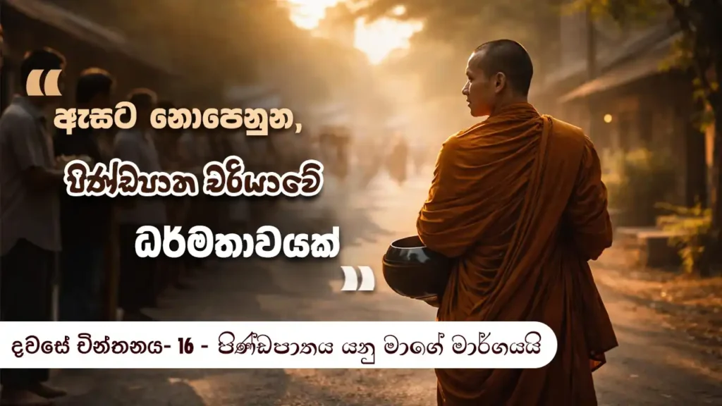 ඒ නිසා තමයි අද දවසේ චින්තනය ‘පිණ්ඩපාතය යනු මාගේ මාර්ගයයි’ කියන එක.