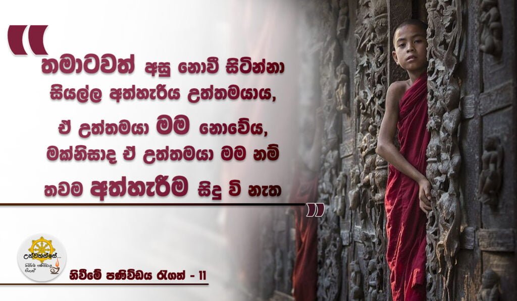 “ තමාටවත් අසු නොවී සිටින්නා සියල්ල අත්හැරිය උත්තමයාය , ඒ උත්තමයා මම නොවේය , මක්නිසාද ඒ උත්තමයා මම නම් තවම අත්හැරීම සිදු වි නැත “