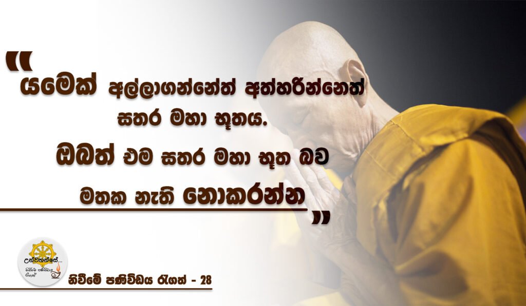 “ යමෙක් අල්ලාගන්නේත් අත්හරින්නෙත් සතර මහා භූතය. ඔබත් එම සතර මහා භූත බව මතක නැති නොකරන්න “