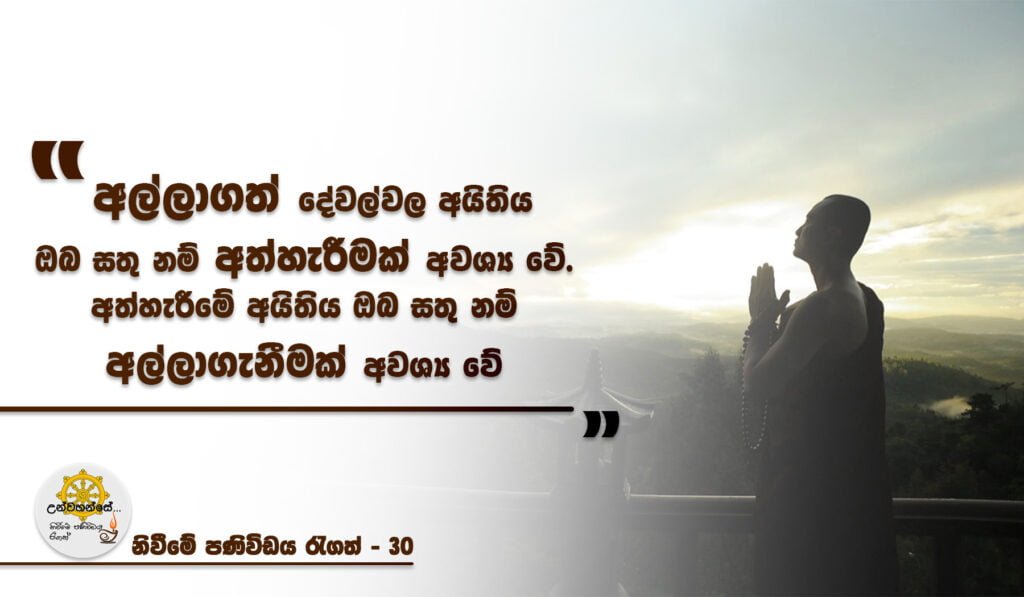 • පූජා කල දේ පූජාකලාය යන මතකයට පවා, අවශ්‍යය අත්හැරීමක් !