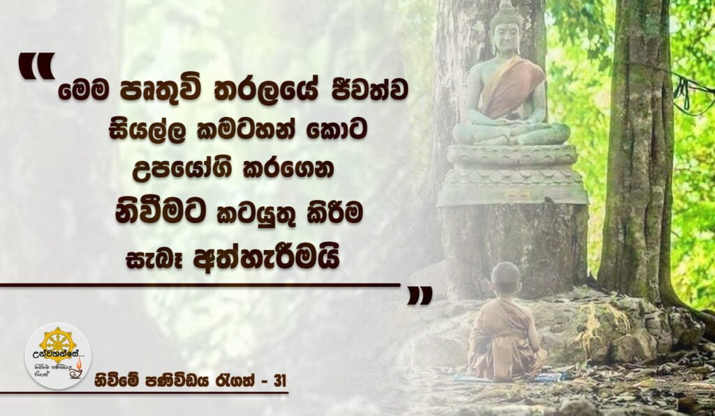 “ මෙම පෘතුවි තරලයේ ජීවත්ව සියල්ල කමටහන් කොට උපයෝගි කරගෙන නිවීමට කටයුතු කිරීම සැබෑ අත්හැරීමයි “