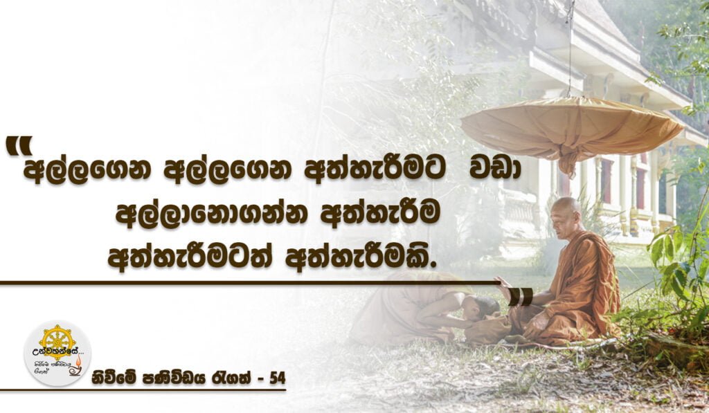 “ අල්ලගෙන අල්ලගෙන අත්හැරීමට වඩා අල්ලනොගන්න අත්හැරීම අත්හැරීමටත් අත්හැරීමකි “