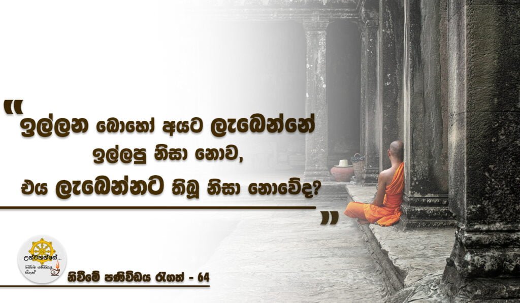 ජීවිතයම සැප උදෙසා අල්ලන යුද්දෙන් ඔබ ඔබට කලේ තොයිලයකි.