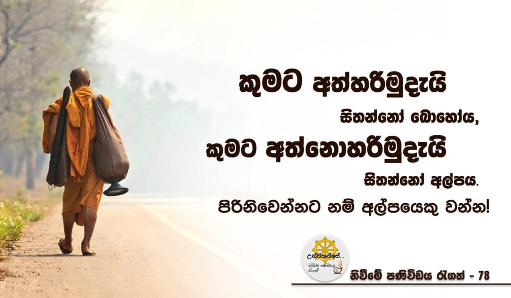කුමට අත්හරිමුදැයි සිතන්නෝ බොහෝය, කුමට අත්නොහරිමුදැයි සිතන්නෝ අල්පය. පිරිනිවෙන්නට නම් අල්පයෙකු වන්න!