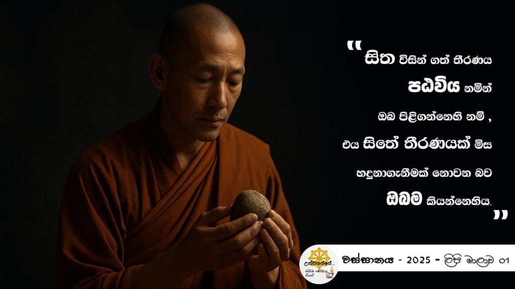 සිත විසින් ගත් තීරණය පඨවිය නමින් ඔබ පිළිගන්නෙහි නම් , එය සිතේ තීරණයක් මිස හඳුනාගැනීමක් නොවන බව ඔබම කියන්නෙහිය.